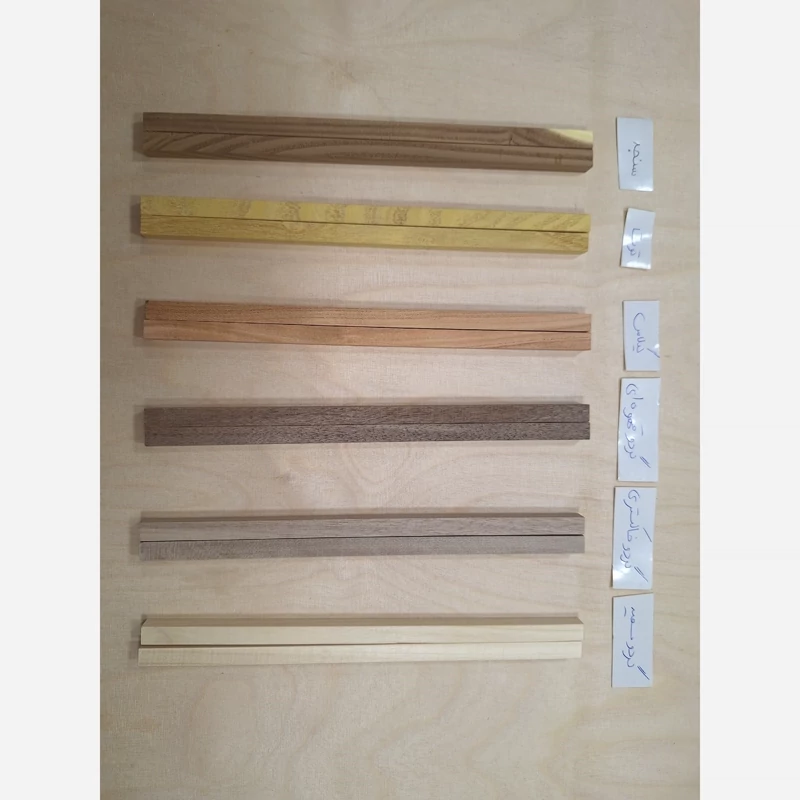 چهار تراش 1 در 1 در 25 سانتی متر برای انتخاب نوع چوب باید عکس ها رو ورق بزنید کنار هر چوب نام آن نوشته شده است این نوع چهار تراش ها گندگی و پرداخت شده می باشد به این معنی که هر چهار وجه آن ها دارای سطح صاف و صیقلی بوده و تمامی سطح دارای ضخامت یکسان 10 میلی متر میباشد کیفیت محصول مطابق با تصویر کالا قیمت به ازای بسته 6 عددی رنگهای چوب به صورت طبیعی بود و با رنگ های شیمیایی رنگ آمیزی نشده است(به طور مثال رنگ زرد، چوب درخت توت میباشد)