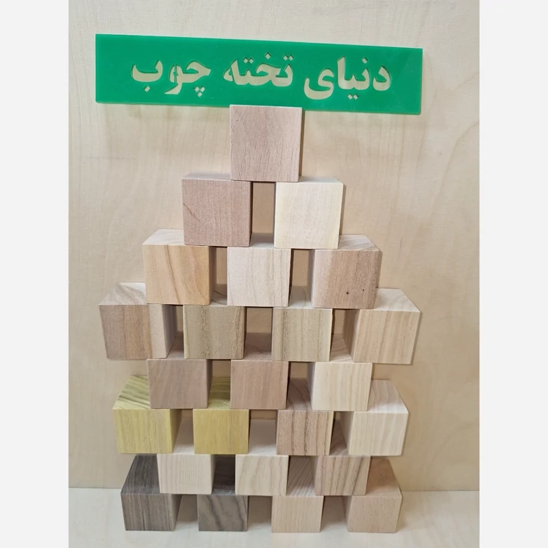 مکعب چوبی 4 سانتی ، بسته 24 عددی ، متنوع از 12 نوع چوب